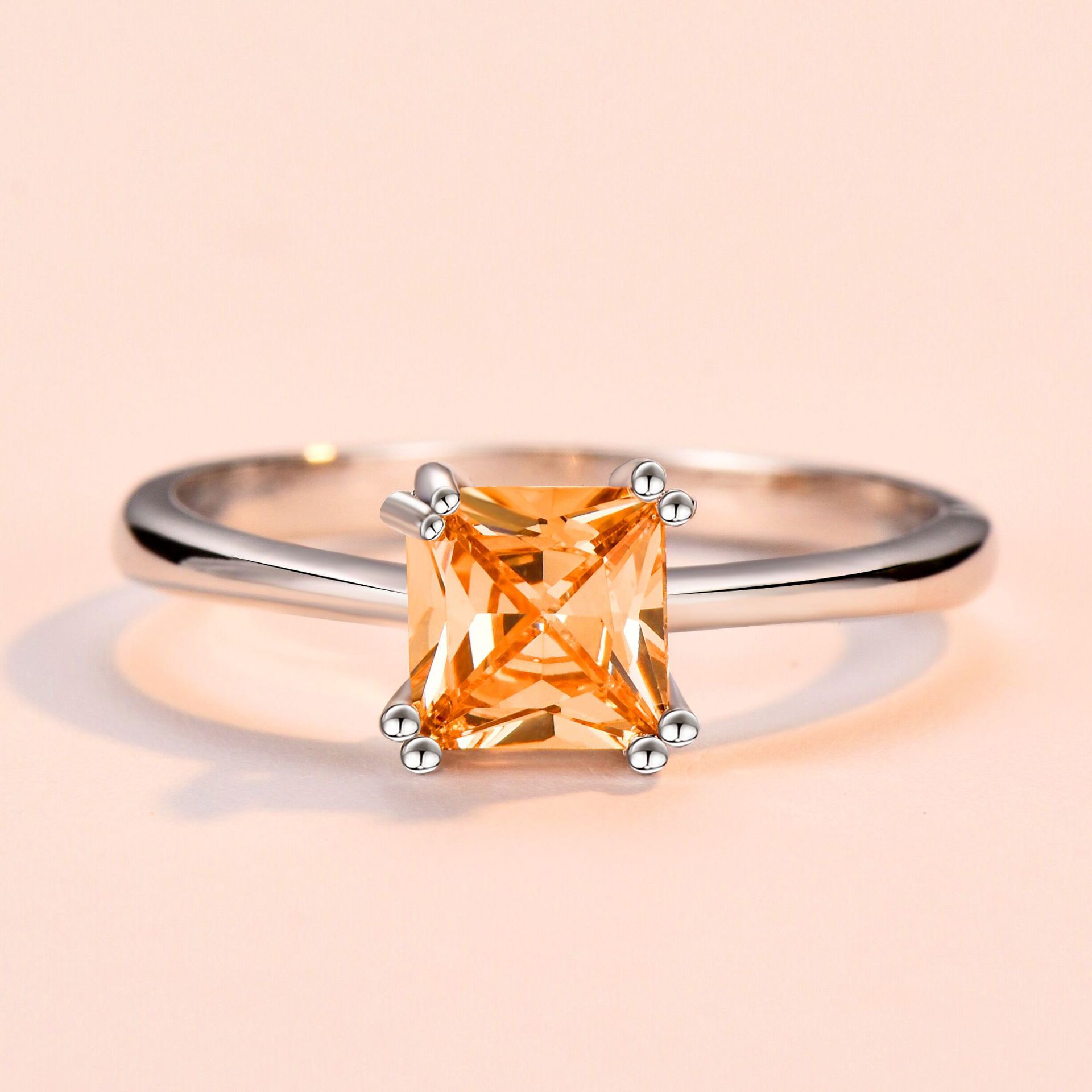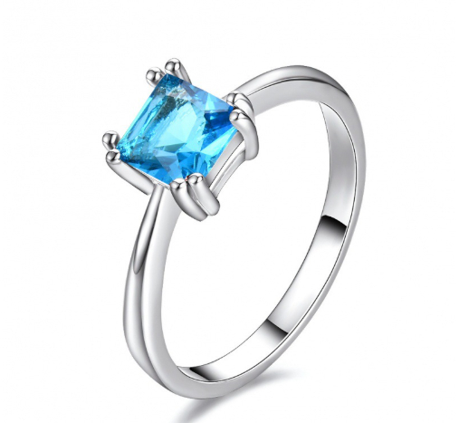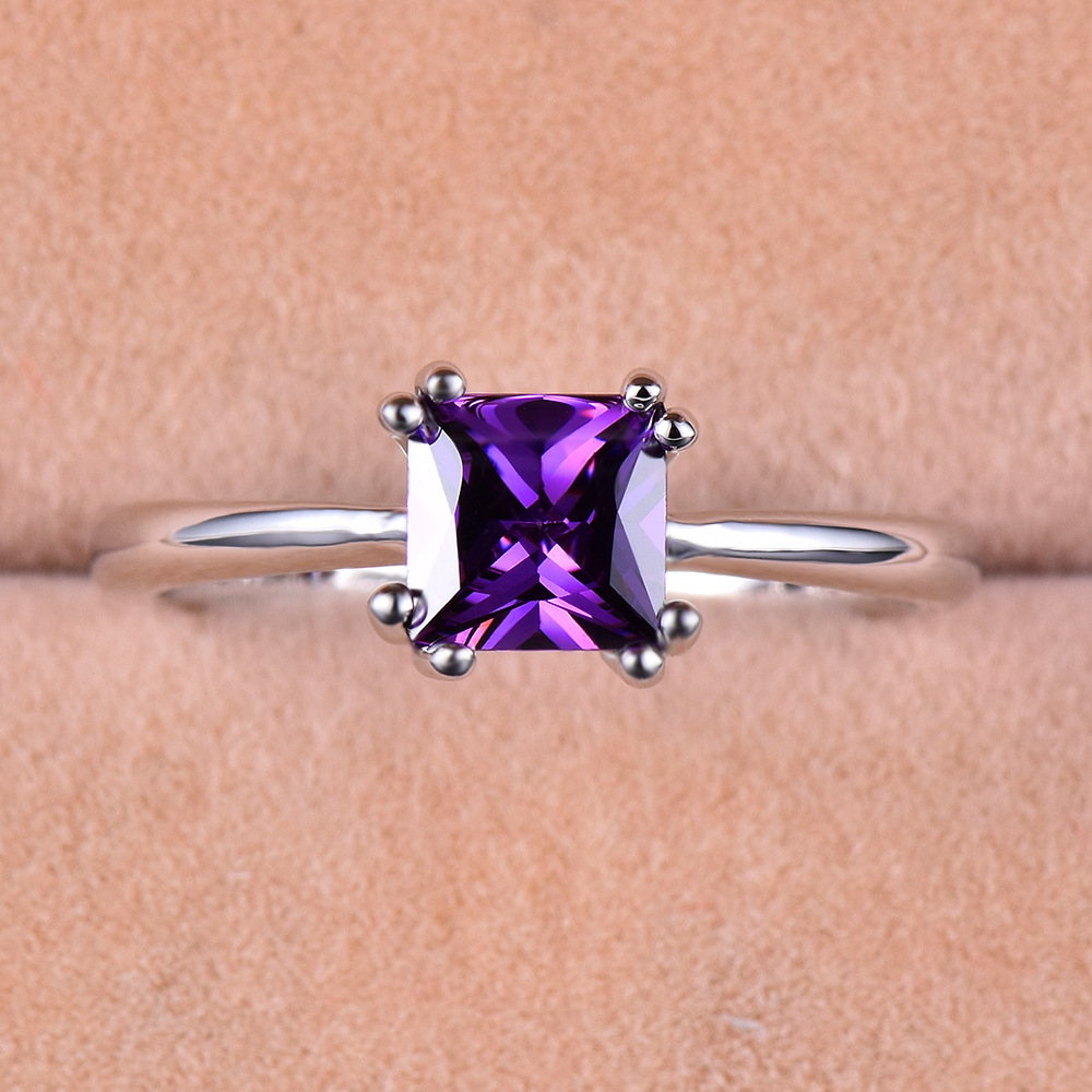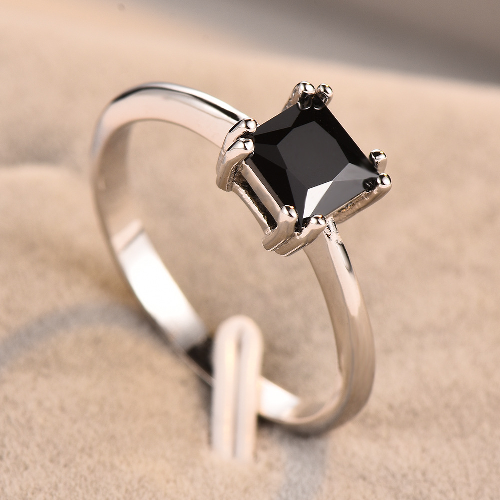 Womens Platinum Square Ring With Four Prongs
